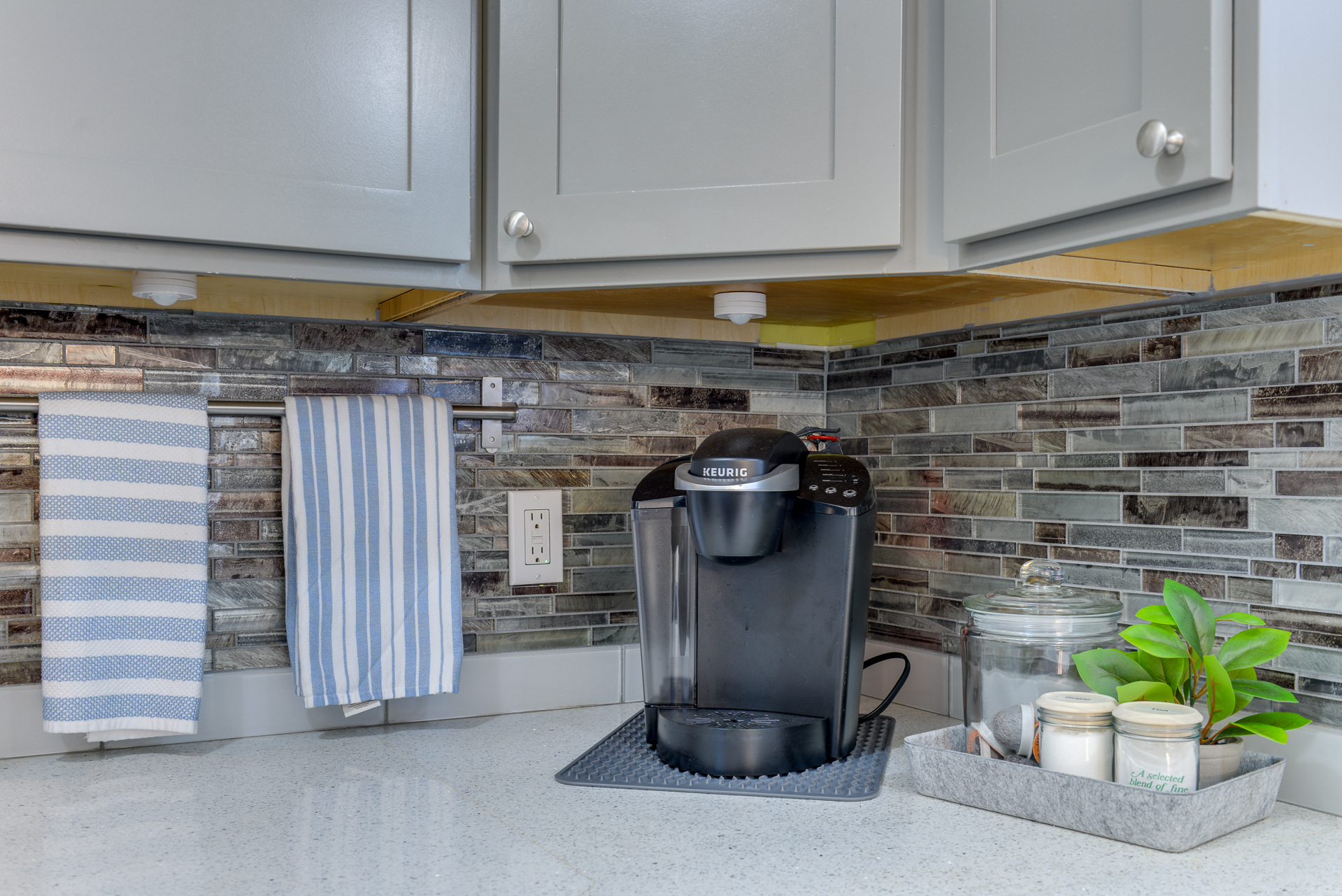 Grab your morning coffee from the Keurig machine with a starter pack of pods. Also available on request are a Mr. Coffee 12-cup coffeemaker or Nespresso machine.
