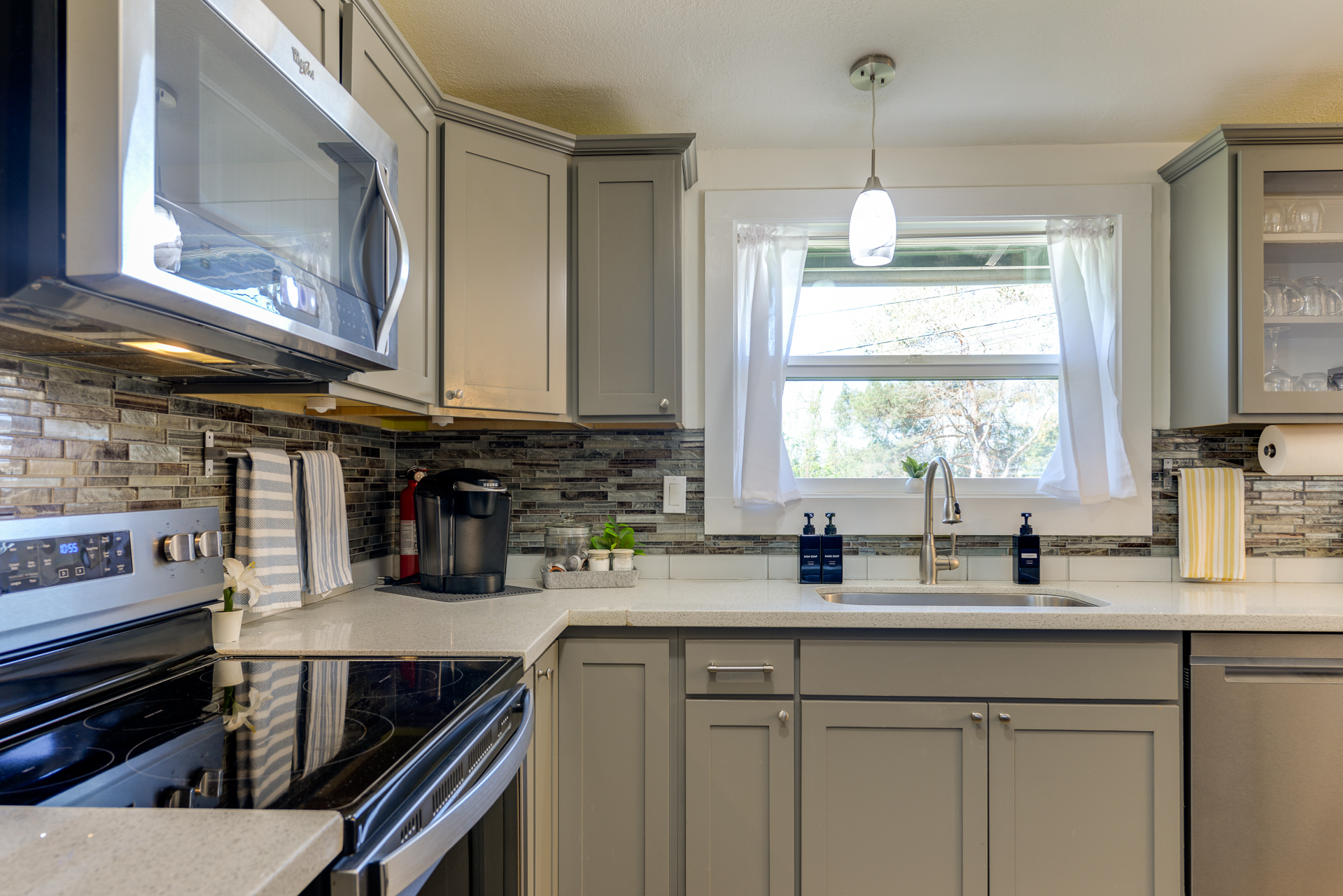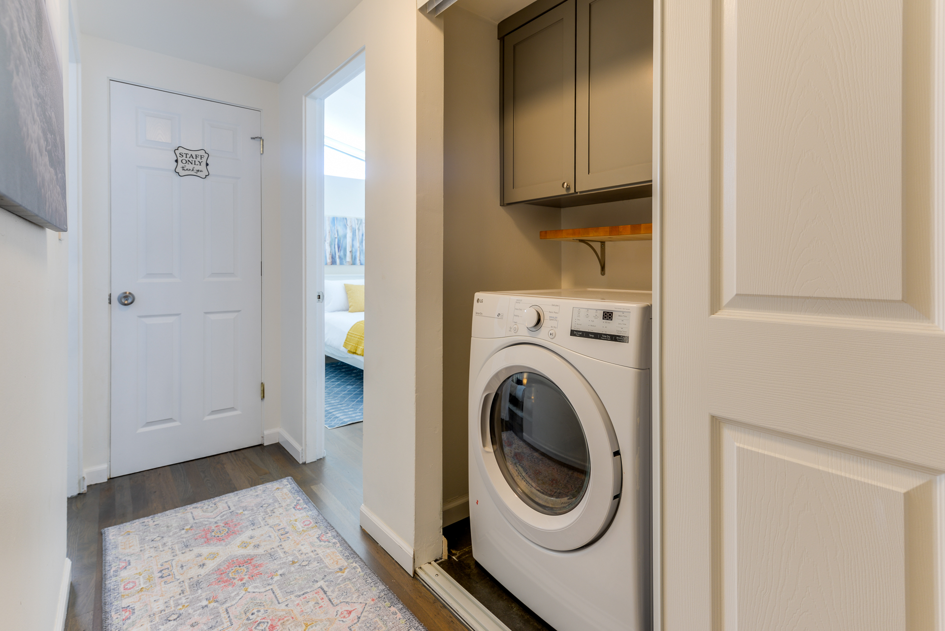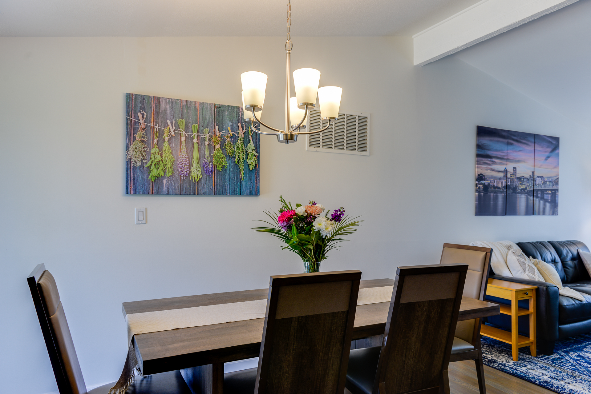 At mealtime, prep and cook your best culinary creations – or try something new from the supplied Portland cookbook – in the fully equipped kitchen with all the standard major appliances – refrigerator, stove/oven, microwave, and super-quiet dishwasher. Handy small appliances include blender and toaster oven. You’ll find plenty of prep space on the countertops, along with the cookware, bakeware, dishware, flatware, glassware, serving-ware, and utensils you need to prepare and serve your favorite meals.