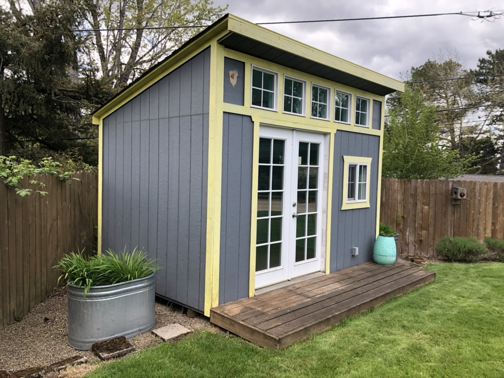 Should you have remote-work needs, retreat to the mini-office in the backyard, where you’ll have privacy and quiet, along with a small desk and chair, powered heat, Wi-Fi access, windows, and light provided by both an overhead fixture and a desk lamp.